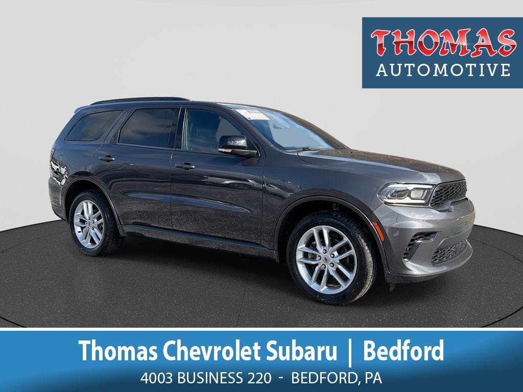 Experience confident driving in this 2024 Dodge Durango GT Plus AWD with the robust 3.6L V6 â" now available in Bedford, PA at the best price. This striking SUV blends performance, comfort, and technology for families and weekend adventurers who demand capability and style. The V6 engine delivers smooth acceleration and dependable towing, while all-wheel drive provides enhanced traction for Pennsylvania roads and changing seasons. Step inside to premium leather seats that elevate every commute and long trip. The integrated navigation system keeps you on course, and Apple CarPlay makes smartphone connectivity seamless for music, messages, and hands-free calls. Adaptive Cruise Control adds convenience and safety on highways by maintaining a set following distance, reducing driver fatigue during longer journeys. This Dodge Durango carries a CARFAX Clean Report, reflecting a well-maintained history and added peace of mind. The GT Plus trim includes thoughtful amenities and modern tech, packaged in a bold exterior design that stands out on the road. With competitive pricing and great value for the features provided, this 2024 Dodge Durango GT Plus AWD is an exceptional choice for buyers seeking versatility and reliability in Bedford, PA. Contact us to schedule a test drive and see why this Dodge Durango is priced to move fast â" the best deal in the area for a vehicle of this caliber.