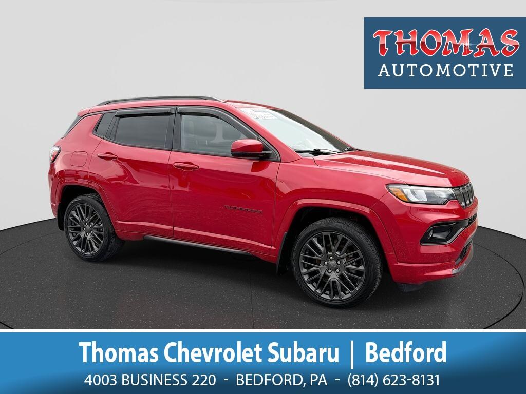 Red 2022 Jeep Compass (RED) Edition 4WD, 4 cyl 2.4L gasoline engine located in Bedford, PA. This eye-catching Jeep Compass RED Edition pairs bold style with practical performance, delivering confident handling from its four-wheel-drive system and efficient power from the 2.4L inline 4. Packed with premium features for comfort and convenience, this Jeep Compass comes equipped with XM Radio for endless entertainment, seamless Apple CarPlay for smartphone integration, and Remote Start for easy cold-weather comfort. Safety and driver-assist technologies elevate every trip: Adaptive Cruise Control helps maintain safe following distances on highways, while modern convenience touches include a Heated Steering Wheel to keep hands warm through winter months. The RED Edition styling adds unique exterior accents and interior upgrades that stand out in traffic and at the curb. This 2022 Jeep Compass combines value, capability, and tech an ideal choice for commuters, weekend adventurers, and families who want SUV versatility without sacrificing efficiency. Meticulously inspected and ready for immediate delivery in Bedford, PA, this vehicle is offered at the best price in the area competitive, transparent, and designed to sell quickly. Schedule a test drive today to experience the confident ride, intuitive tech, and distinctive RED styling for yourself. With four-wheel drive, modern safety features, and exceptional pricing, this Jeep Compass won't last long stop in Bedford, PA and take it for a spin.