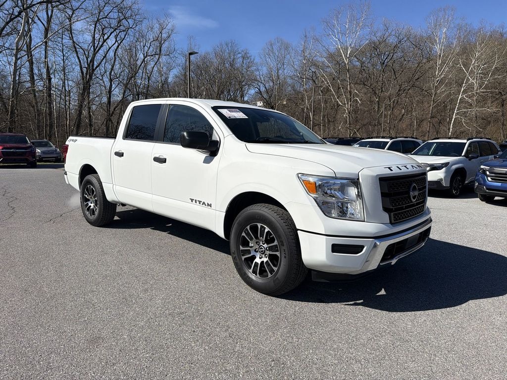 Discover this 2024 Nissan Titan SV in Cumberland, MD - a rugged, capable pickup with low mileage and ready for work or weekend adventures. Powered by a muscular 5.6L V8 gasoline engine and equipped with 4WD, this Nissan Titan delivers confident towing and dependable performance across varied road and weather conditions. With just 4,193 miles, this well-maintained truck offers the benefits of near-new condition without the new-vehicle depreciation. Safety and driver-assist features include Lane Departure Warning and a Back-Up Camera, helping you stay aware and secure on the road and in tight parking situations. Connectivity is seamless with Android Auto and Hands-Free Bluetooth, so you can access navigation, music, and contacts while keeping your focus on driving. This Nissan Titan also carries a CARFAX 1-Owner history, providing added peace of mind about its ownership and service record. The SV trim balances comfort and utility, offering a practical interior layout and durable materials designed to handle daily demands. Whether you need a dependable work truck, a family hauler, or a weekend towing companion, this 2024 Nissan Titan SV combines power, low mileage, and modern tech features in a well-preserved package. Located in Cumberland, MD, this vehicle is available for inspection and test drives - schedule a visit to experience its performance and capability firsthand.