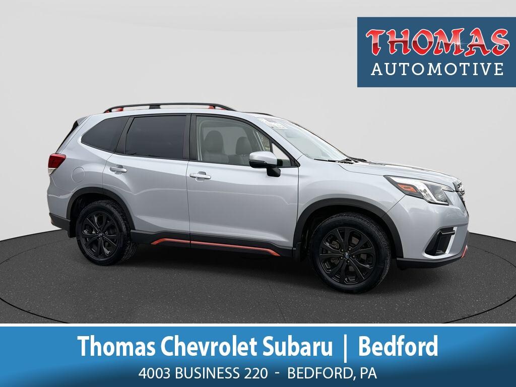 2023 Subaru Forester Sport â" 18845 miles â" AWD â" 2.5L 4-cylinder. Located in Bedford, PA, this well-maintained Subaru Forester Sport pairs Subaru's legendary Symmetrical All-Wheel Drive with a fuel-efficient 2.5L gasoline engine for confident handling in all seasons. With only 18,845 miles, this low-mileage SUV delivers reliable daily driving plus long-term value. Sport trim features include Apple CarPlay for seamless smartphone integration, Hands-Free Bluetooth for safe calls and audio streaming, Lane Keep Assist to help maintain lane position, and Adaptive Cruise Control for relaxed highway driving. Safety and convenience are enhanced by modern driver-assist technologies, while the roomy cabin and versatile cargo area make this Subaru Forester ideal for commuting, weekend adventures, and family trips. A CARFAX Clean Report confirms a clear history, and this vehicle is being offered at the best price in the area â" an exceptional value for buyers seeking performance, safety, and low mileage in a pre-owned SUV. Located in Bedford, PA, the Subaru Forester Sport is ready for immediate test drives. Contact us to schedule a viewing, request the CARFAX report, or get a personalized offer. Competitive financing and trade-in evaluations are available to help you drive home a dependable Subaru Forester today.